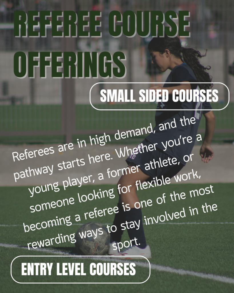 Looking to be an essential part of Soccer in British Columbia? Register today to start your journey as a referee; BC Soccer is offering a variety of courses to help you grow and succeed on the field. You’ll find a list of courses and dates to best suit your experience and goals.